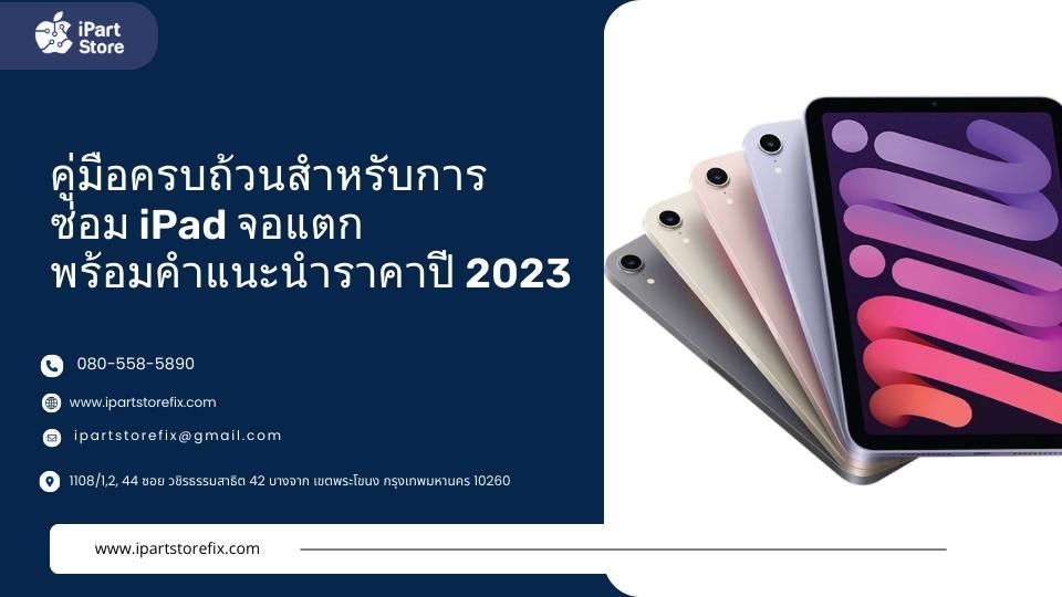 การซ่อมจอ iPad ที่แตกเป็นสิ่งจำเป็น เพื่อให้สามารถใช้งานอุปกรณ์ได้อย่างปลอดภัยและมีประสิทธิภาพสูงสุด โดยขั้นตอนการซ่อมประกอบด้วยการประเมินความเสียหาย เลือกศูนย์ซ่อมหรือร้านซ่อมที่เชื่อถือได้ ดำเนินการซ่อม และทดสอบการใช้งาน ราคาค่าซ่อมจอ iPad ในปี 2023 จะขึ้นอยู่กับรุ่นของ iPad และระดับความเสียหาย โดยอาจอยู่ในช่วง 3,000 – 10,000 บาท ดังนั้น หากจอ iPad ของคุณแตก ควรดำเนินการซ่อมโดยเร็วที่สุด เลือกสถานที่ซ่อมที่มีชื่อเสียง สอบถามราคาและระยะเวลาล่วงหน้า และปกป้องจอ iPad หลังจากซ่อมเสร็จ เพื่อให้สามารถใช้งานอุปกรณ์ได้อย่างยาวนานและมีประสิทธิภาพสูงสุด